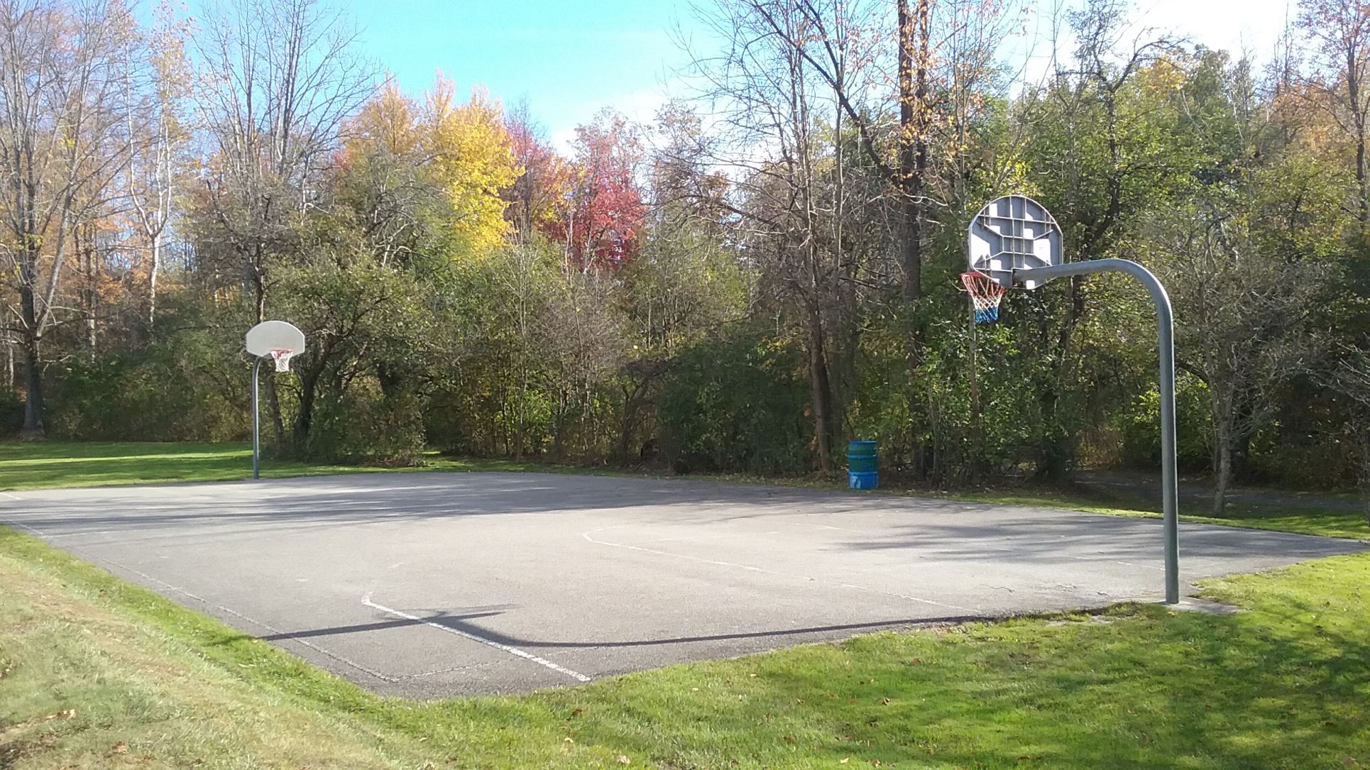 Installed a regulation basketball court with an asphalt surface, goals on each end and free throw lines permanently painted on the playing surface.