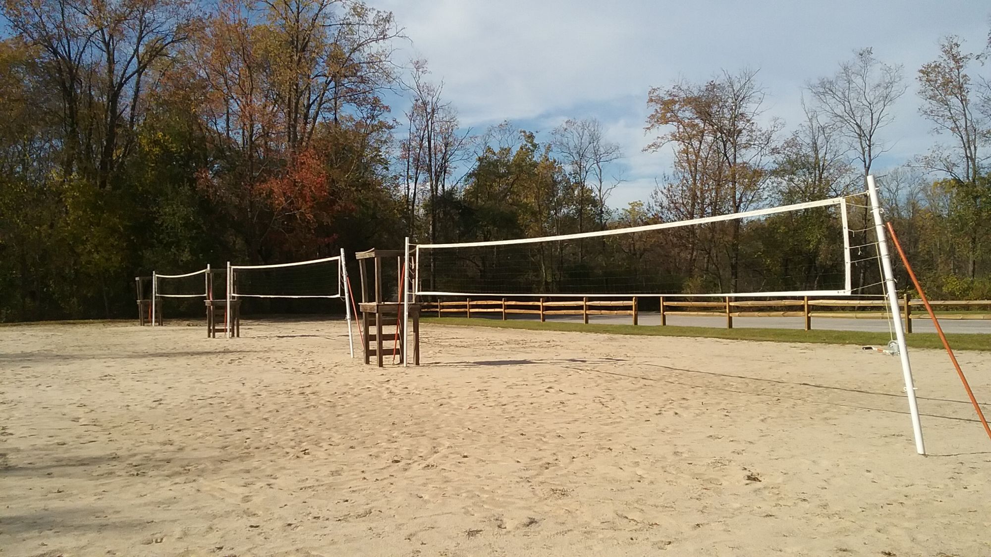 Developed 3 regulation sand volleyball courts with an umpire's chair for each field.
