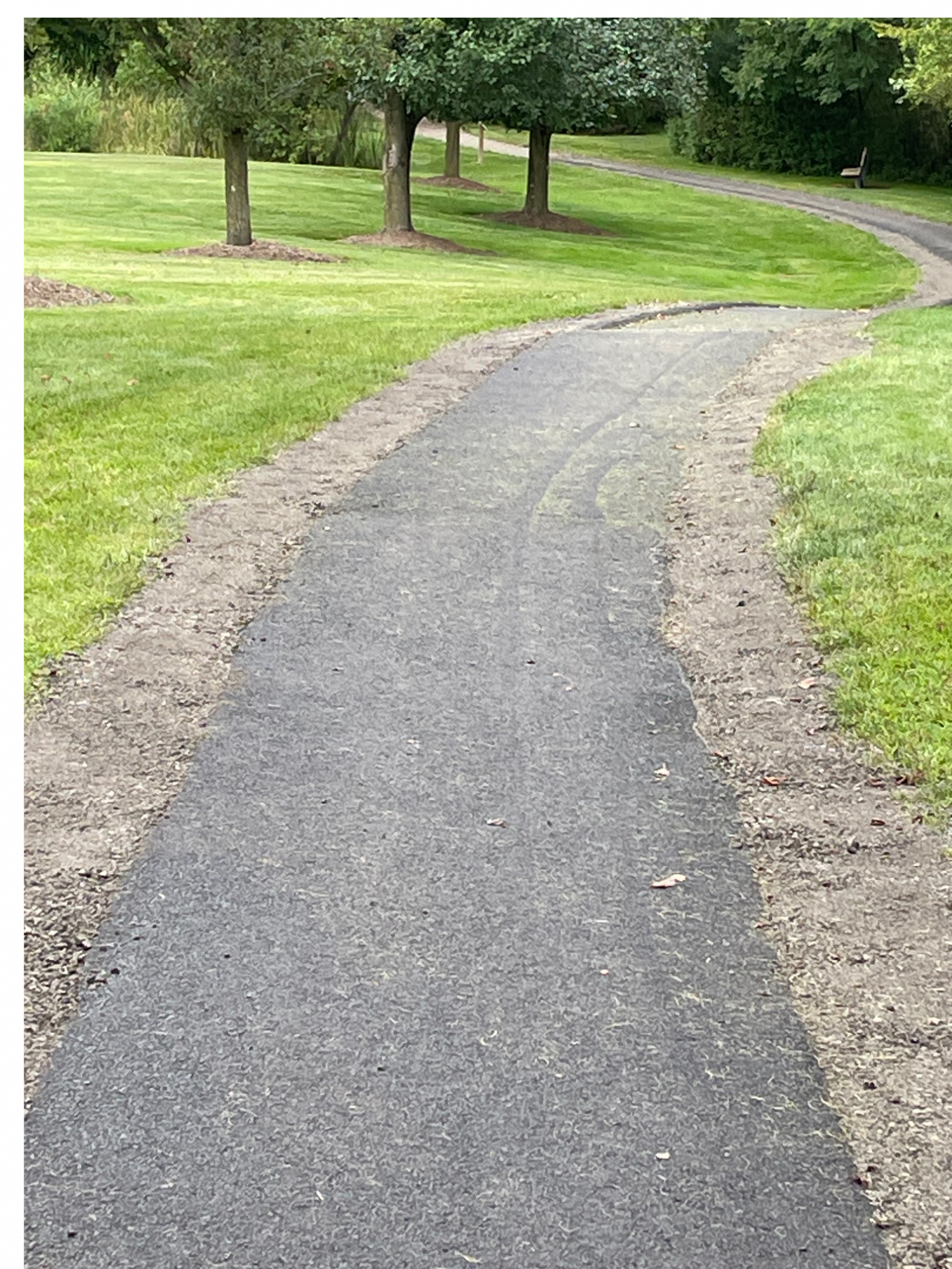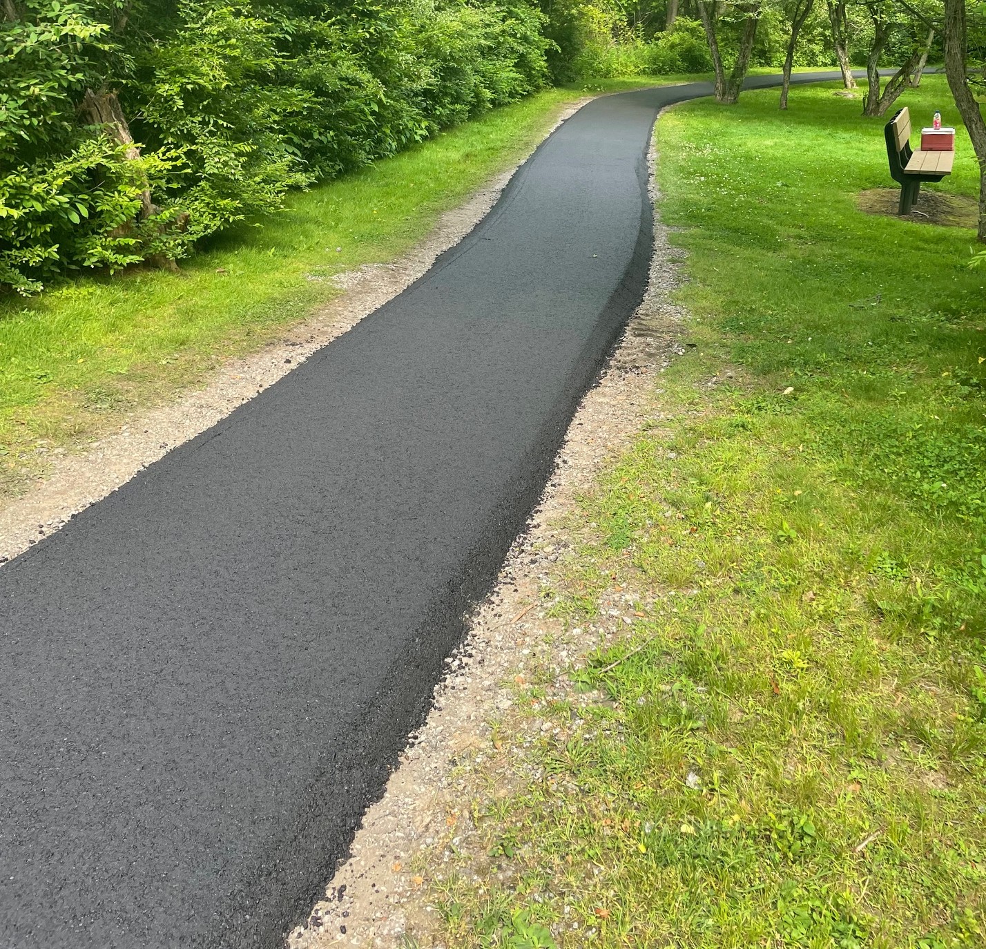 Asphalt was added to the "walking trail" to help visitors of all ages and their "four legged furry friends" safely enjoy their walk.