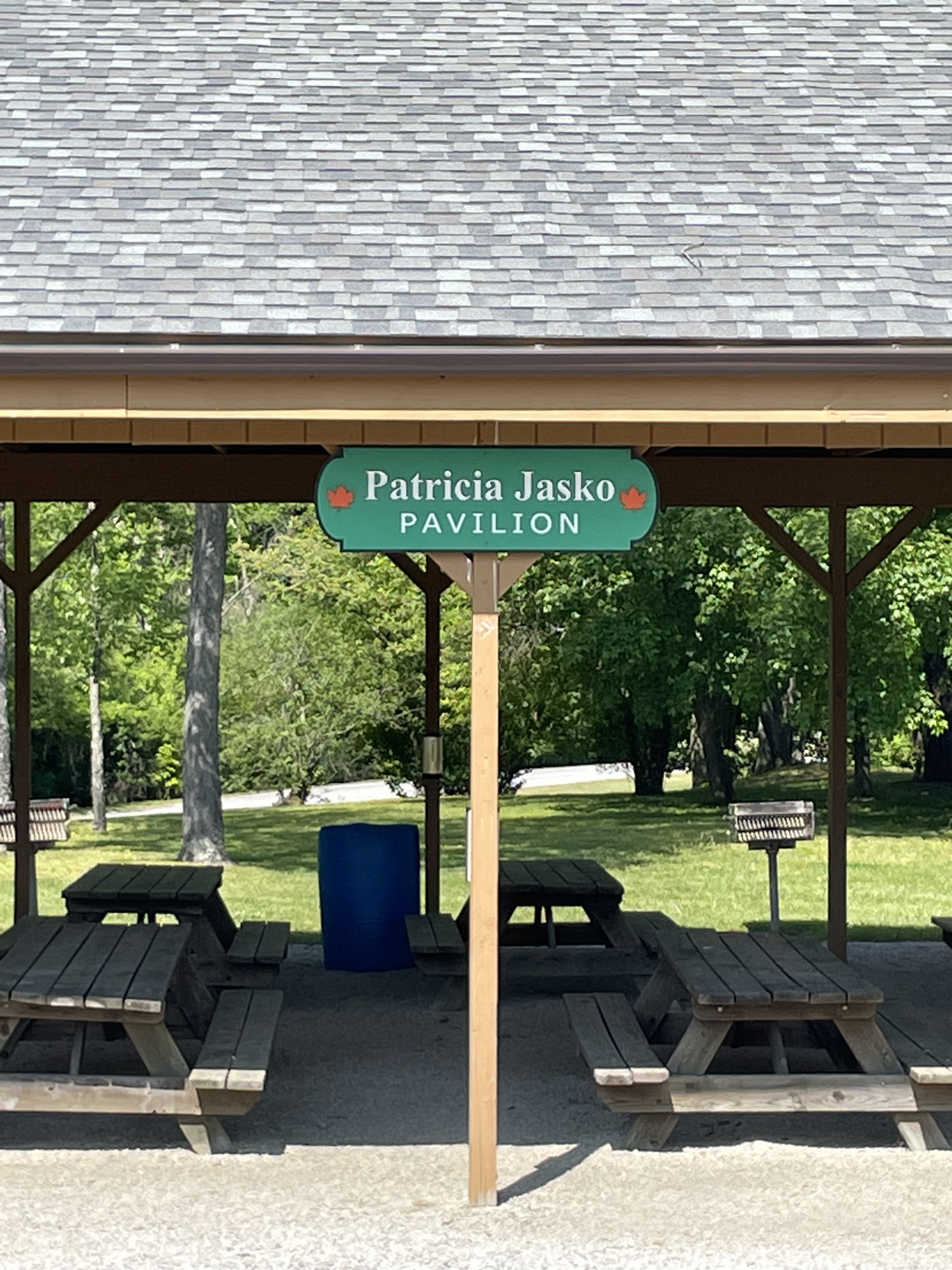 Dedicated the pavilion to "Patricia Jasko" for her years of leadership and service to the youth of our community and her endless energy directed to the improvement of the West Geauga Community Joint Recreation District park.