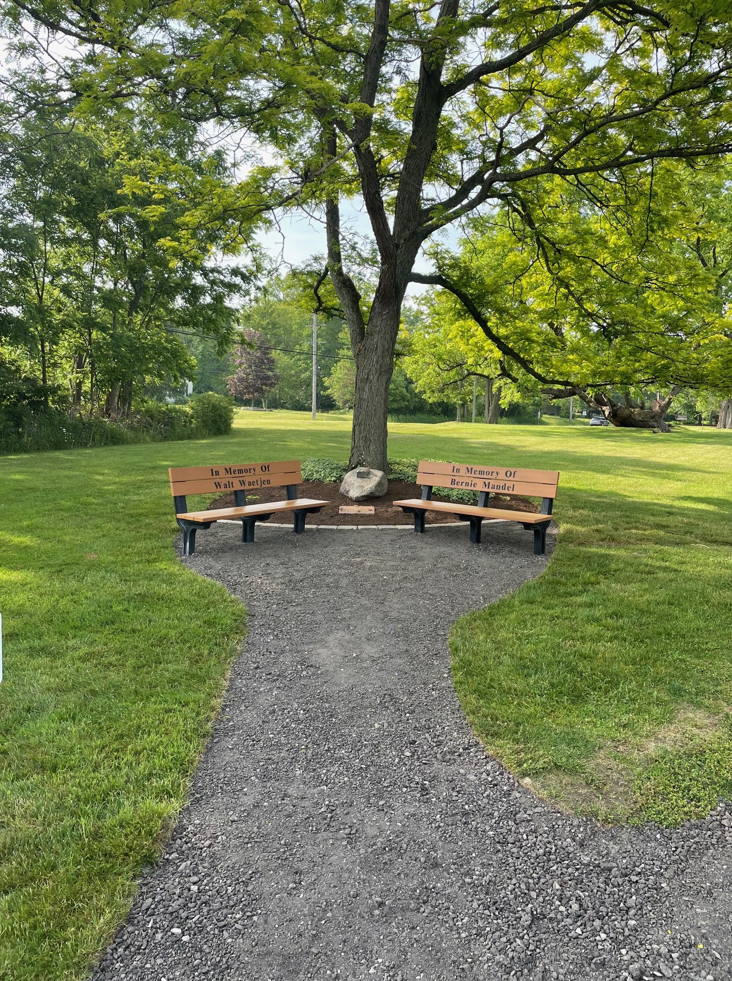 Dedicated benches in our new "Memorial Garden" to Walter (Walt) Waetjen and Bernard (Bernie) Mandel for their years of leadership and dedication to the mission of the West Geauga Community Joint Recreation District.